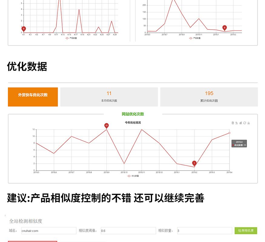客戶公司于2014年創(chuàng)立于中國青島,是行業(yè)內(nèi)發(fā)制品供應商,致力于高端假發(fā)、睫毛的出口貿(mào)易。谷歌seo推廣效果怎么樣?我們的Google優(yōu)化推廣假發(fā)睫毛行業(yè)案例客戶于2017年選擇外貿(mào)快車產(chǎn)品,初次簽訂了1年合作協(xié)議,2018年到期以后選擇了一次性續(xù)費3年。目前外貿(mào)快車網(wǎng)站上共發(fā)布了1341個產(chǎn)品,并且客戶很注重產(chǎn)品文案的質量,不相似產(chǎn)品的比例高達80%以上。產(chǎn)品新聞和行業(yè)知識也持續(xù)在更新中,目前網(wǎng)站上已發(fā)布111條新聞和113條行業(yè)知識。這些頁面共計為客戶帶來2258條詢盤,日均流量更是高達264個。
